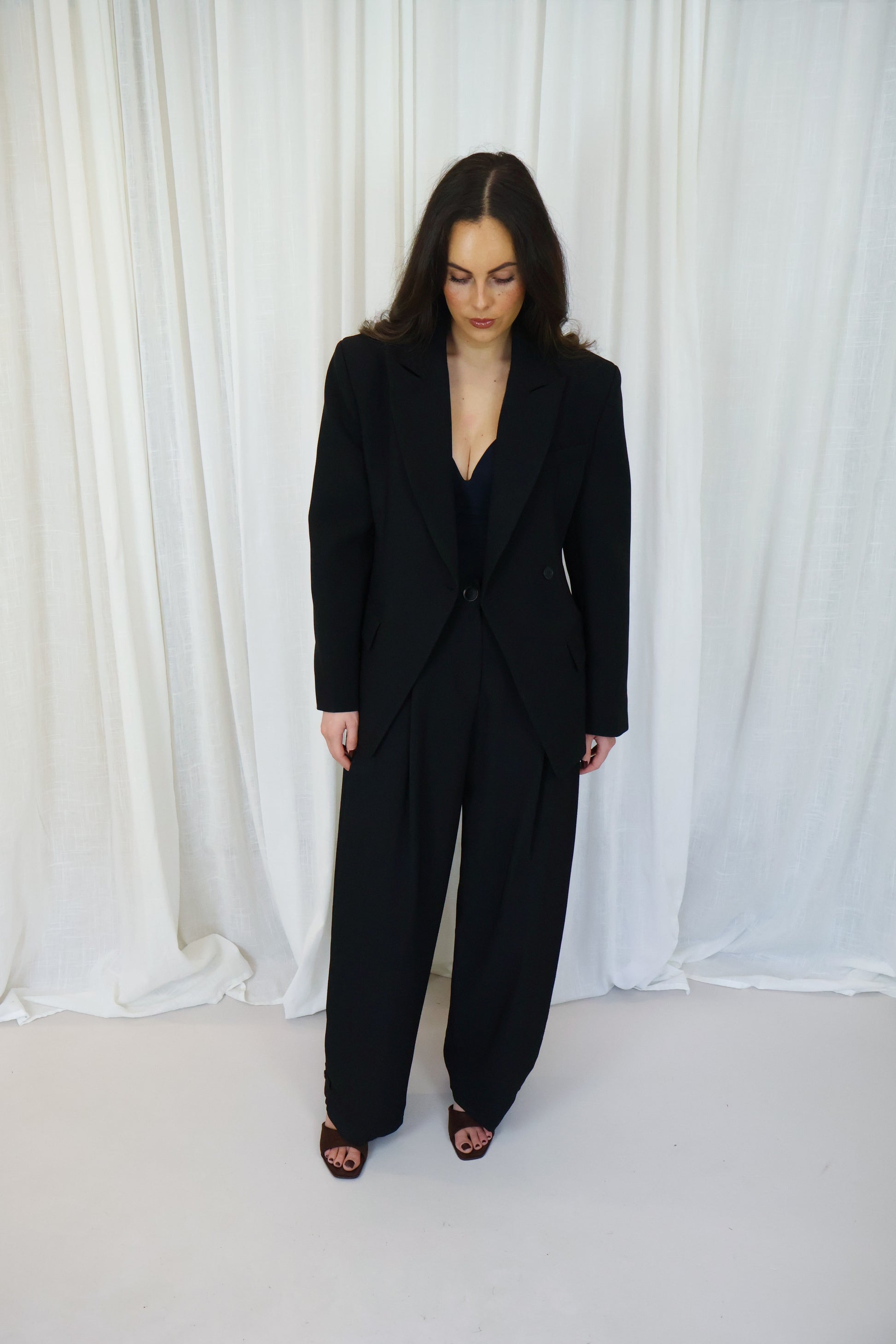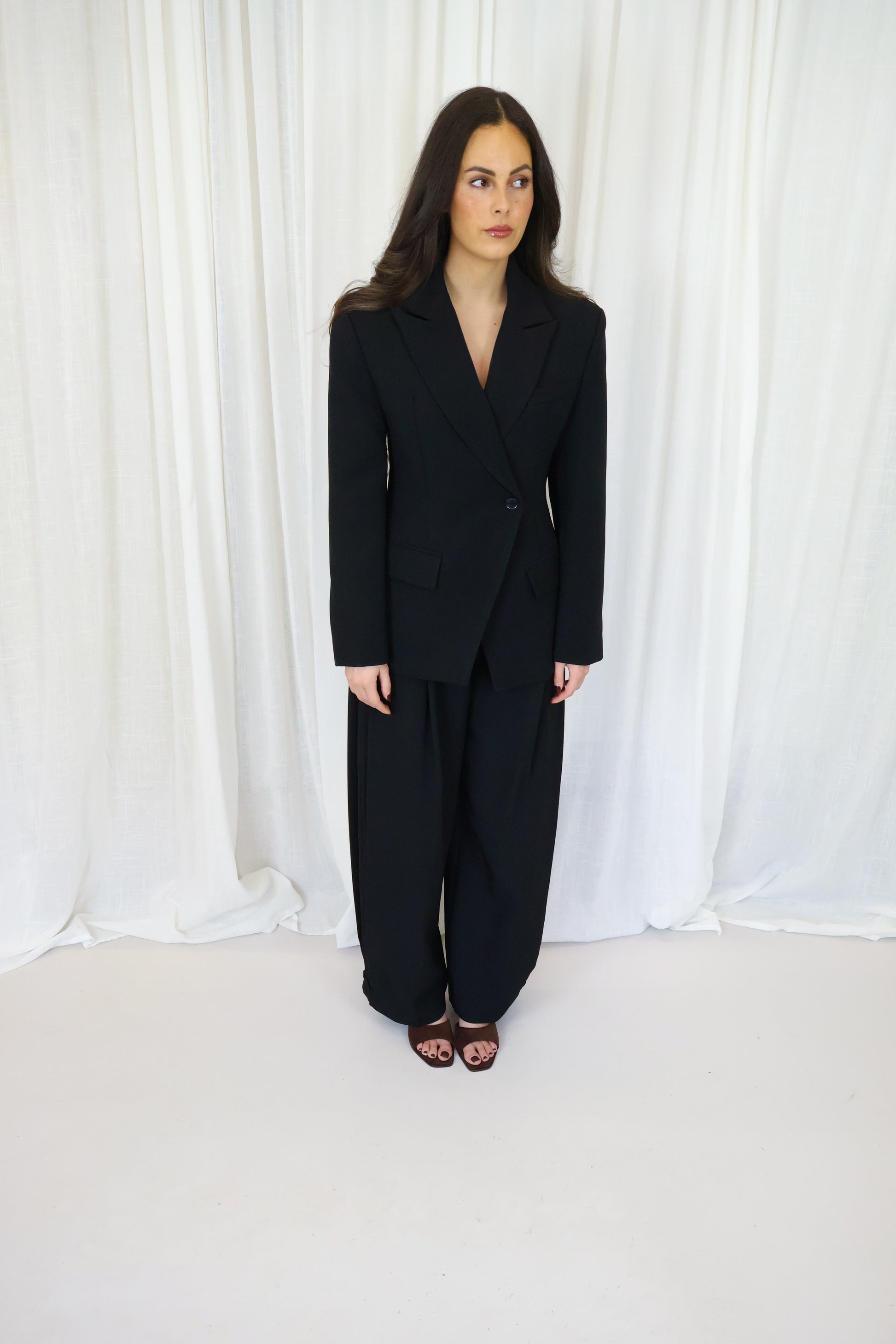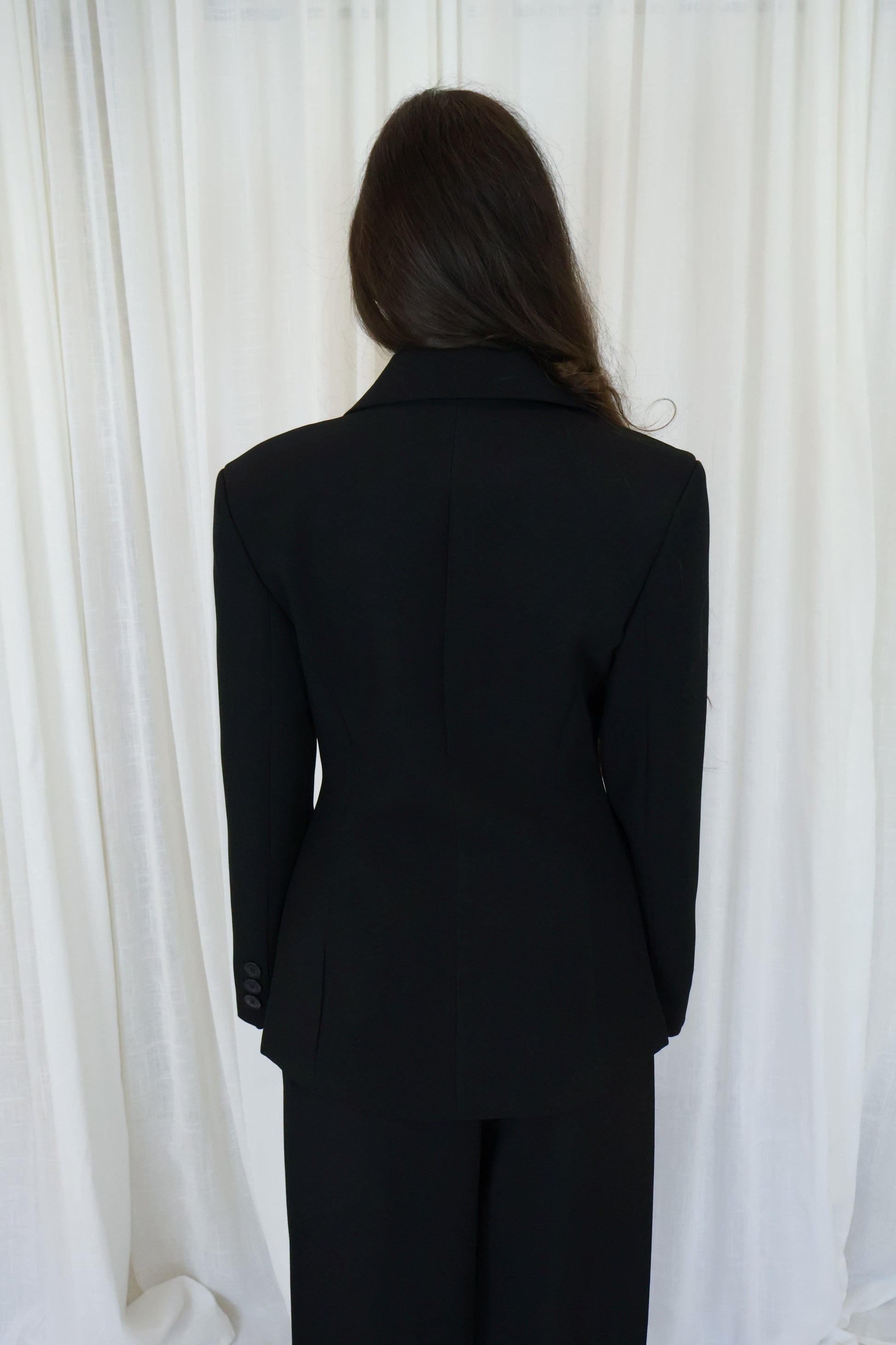 Deze zwarte getailleerde blazer is een tijdloze essential met een krachtige, vrouwelijke uitstraling. De scherpe schouders en elegante taillering zorgen voor een mooi silhouet, terwijl de luxe stofmix garant staat voor comfort en een perfecte fit. Dankzij de lichte stretch beweegt de blazer soepel mee en blijft hij de hele dag mooi in vorm. Draag ’m als onderdeel van een chic pak of combineer met een jeans en top voor een moderne, effortless look.
