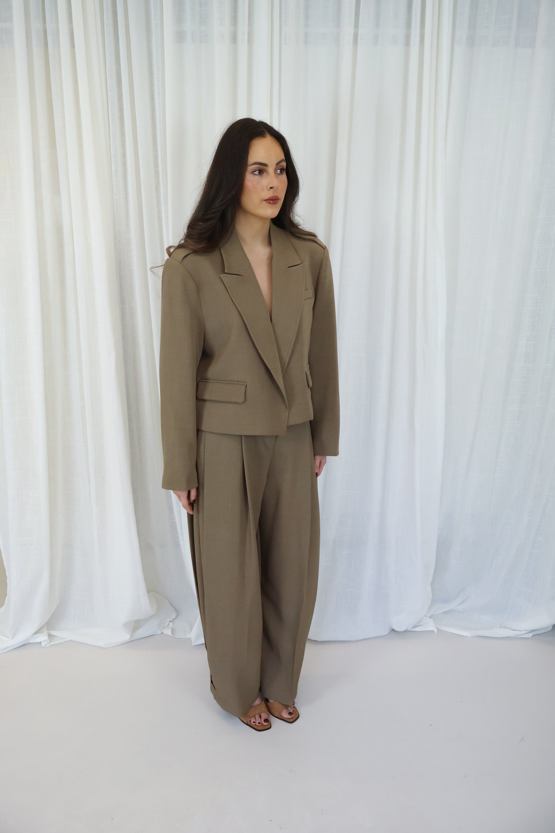 Deze camelkleurige korte blazer is een moderne take op een klassieke essential. Het kortere model zorgt voor een frisse, stijlvolle uitstraling en benadrukt subtiel de taille. De strakke lijnen en minimalistische afwerking maken deze blazer perfect om zowel chic als casual te dragen. Dankzij de lichte stretch in de stof biedt de blazer een comfortabele fit die mooi in vorm blijft. Combineer met een bijpassende pantalon voor een sophisticated set of draag ’m los over een top voor een effortless, fashionable look.