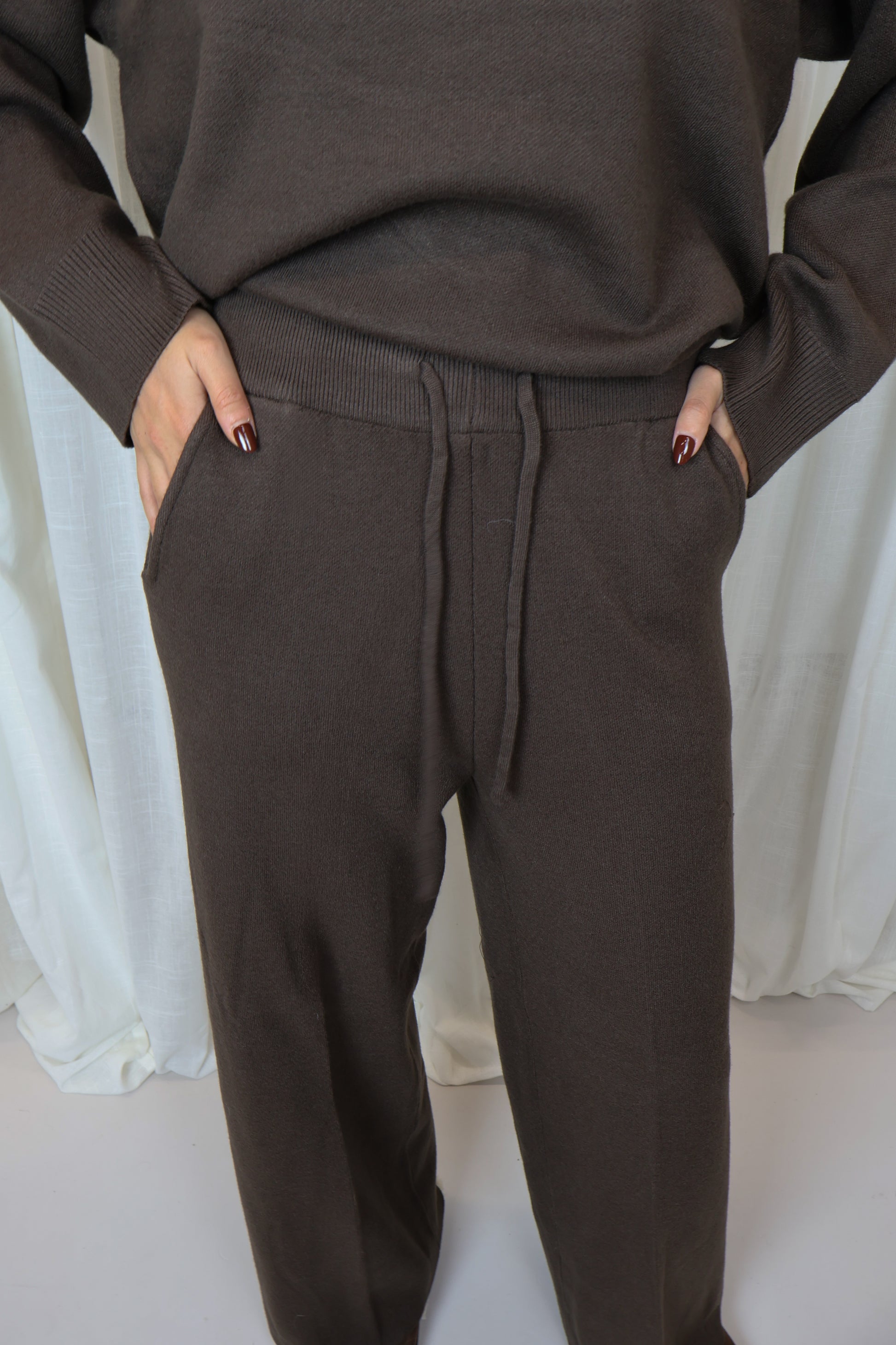 De perfecte set voor de koelere dagen. Deze comfy two-piece in een warme koffiekleur combineert stijl en comfort: een zachte knit top met bijpassende broek die je casual én chic kunt dragen.