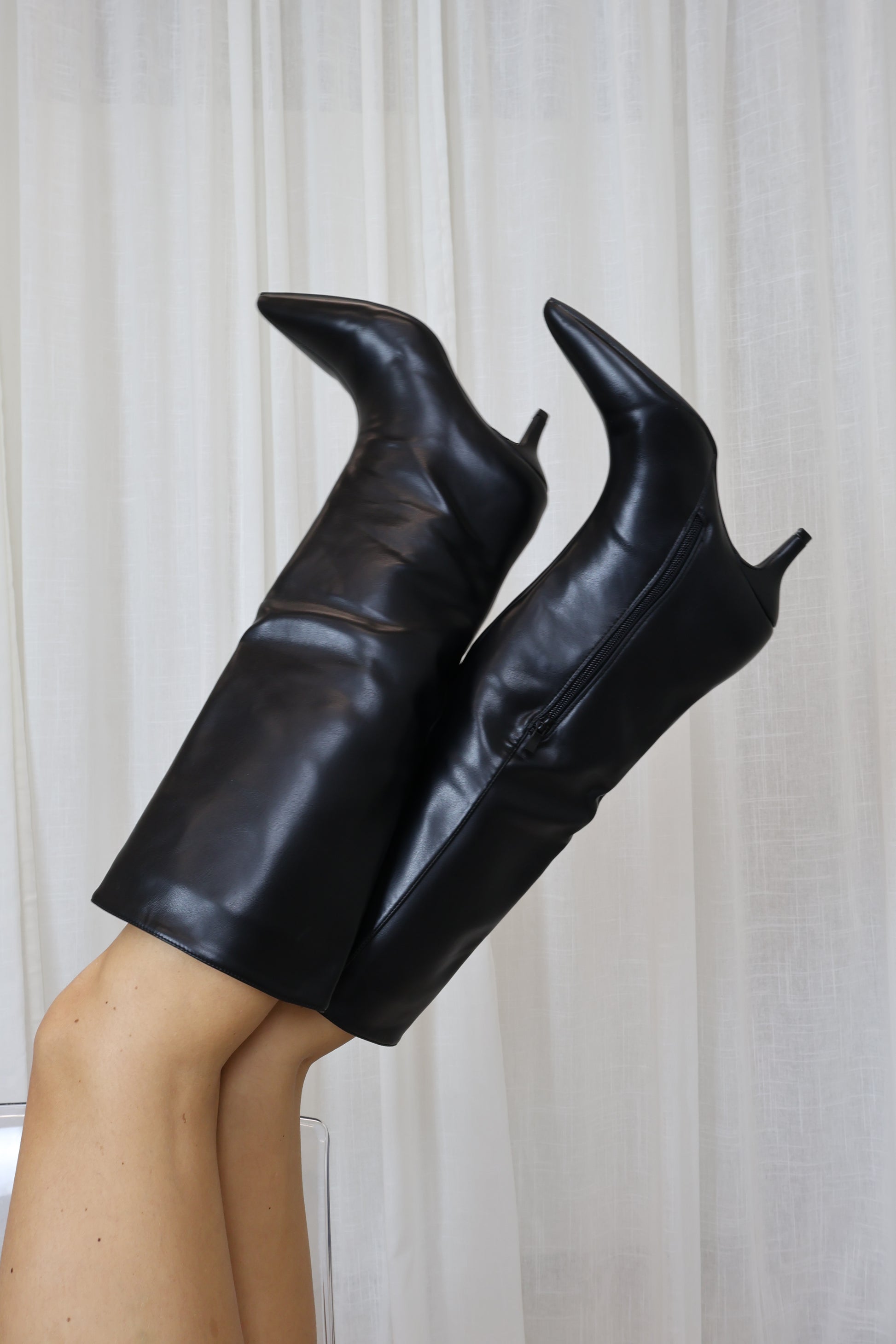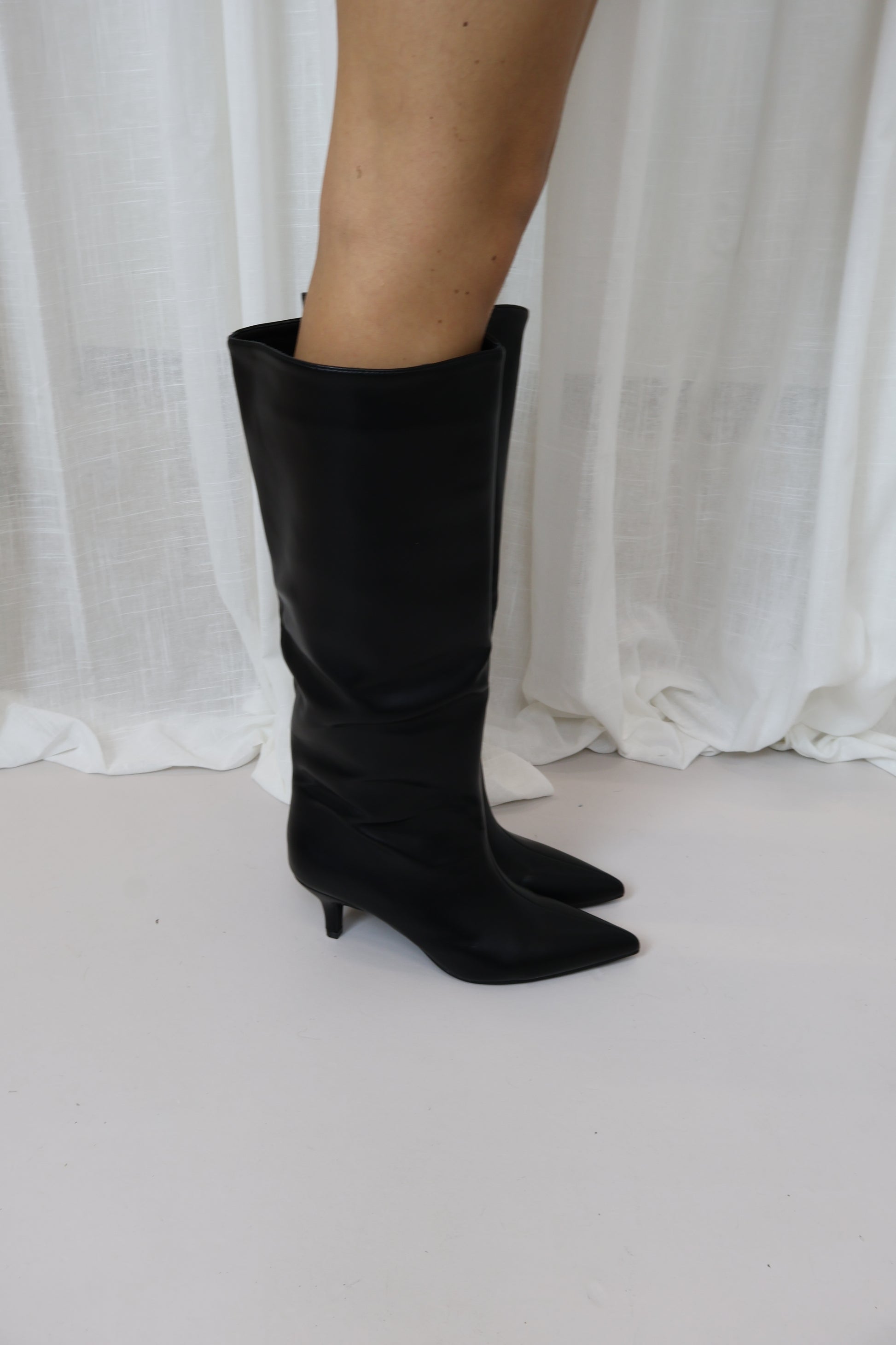 Deze donkerbruine laars is een echte klassieker die je eindeloos kunt combineren. Perfect onder een jurk of met een jeans voor een stijlvolle everyday look.