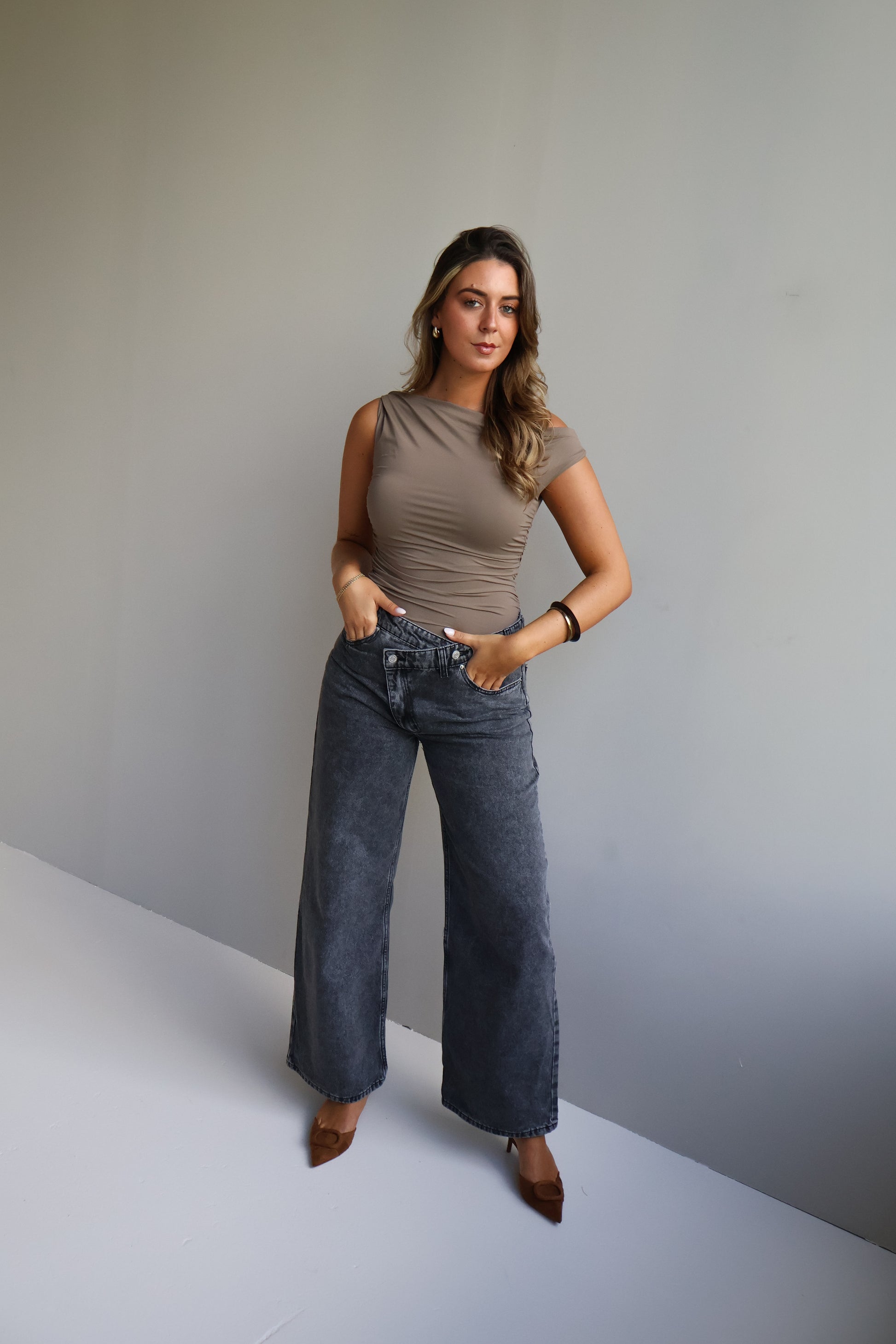 Deze taupe off-shoulder top is een echte eyecatcher en makkelijk te stylen voor zowel een casual als een avondlook. De zachte, stretchy stof sluit mooi aan en benadrukt de vrouwelijke pasvorm.