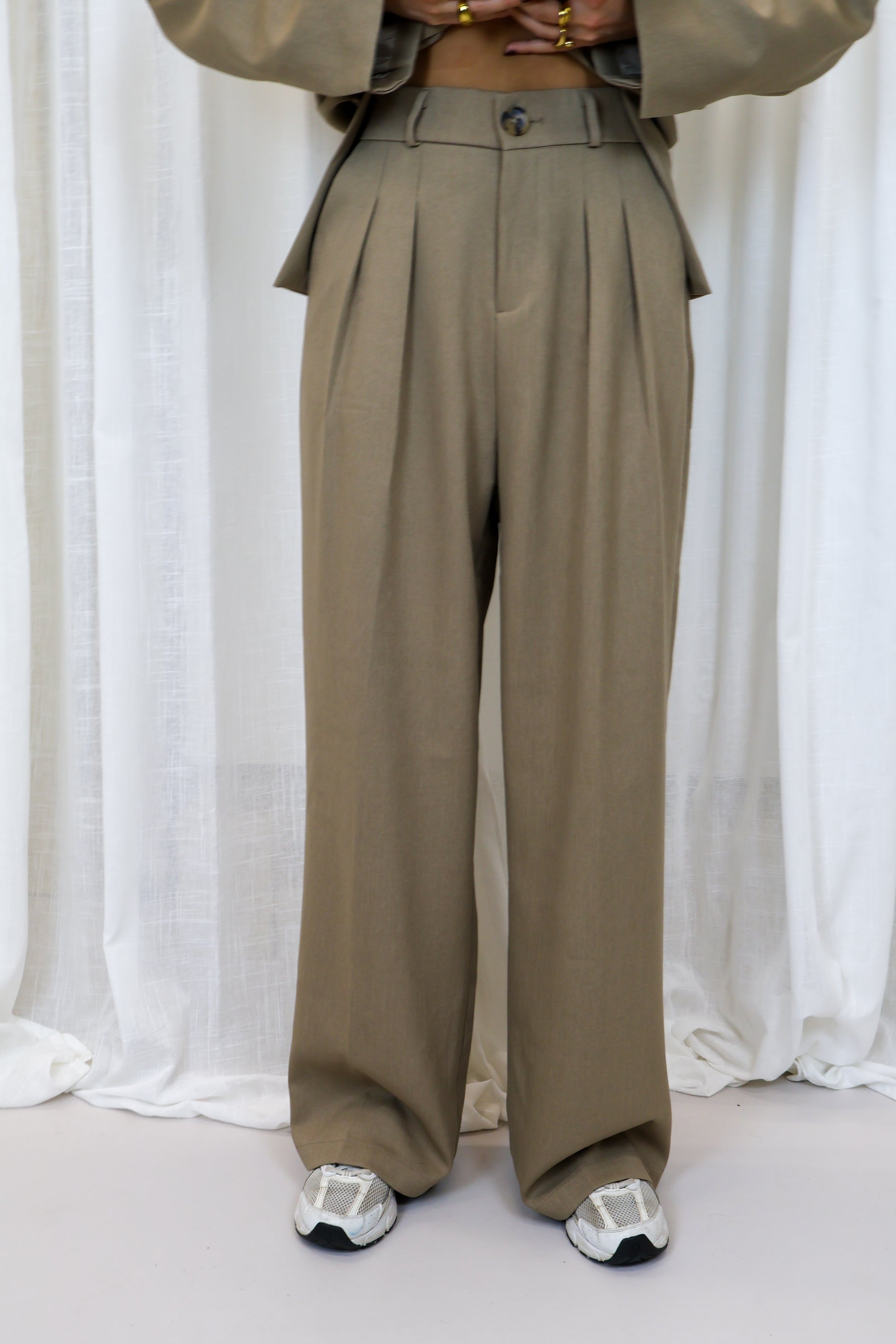 - Zachte beige kleur, perfect passend bij de blazer