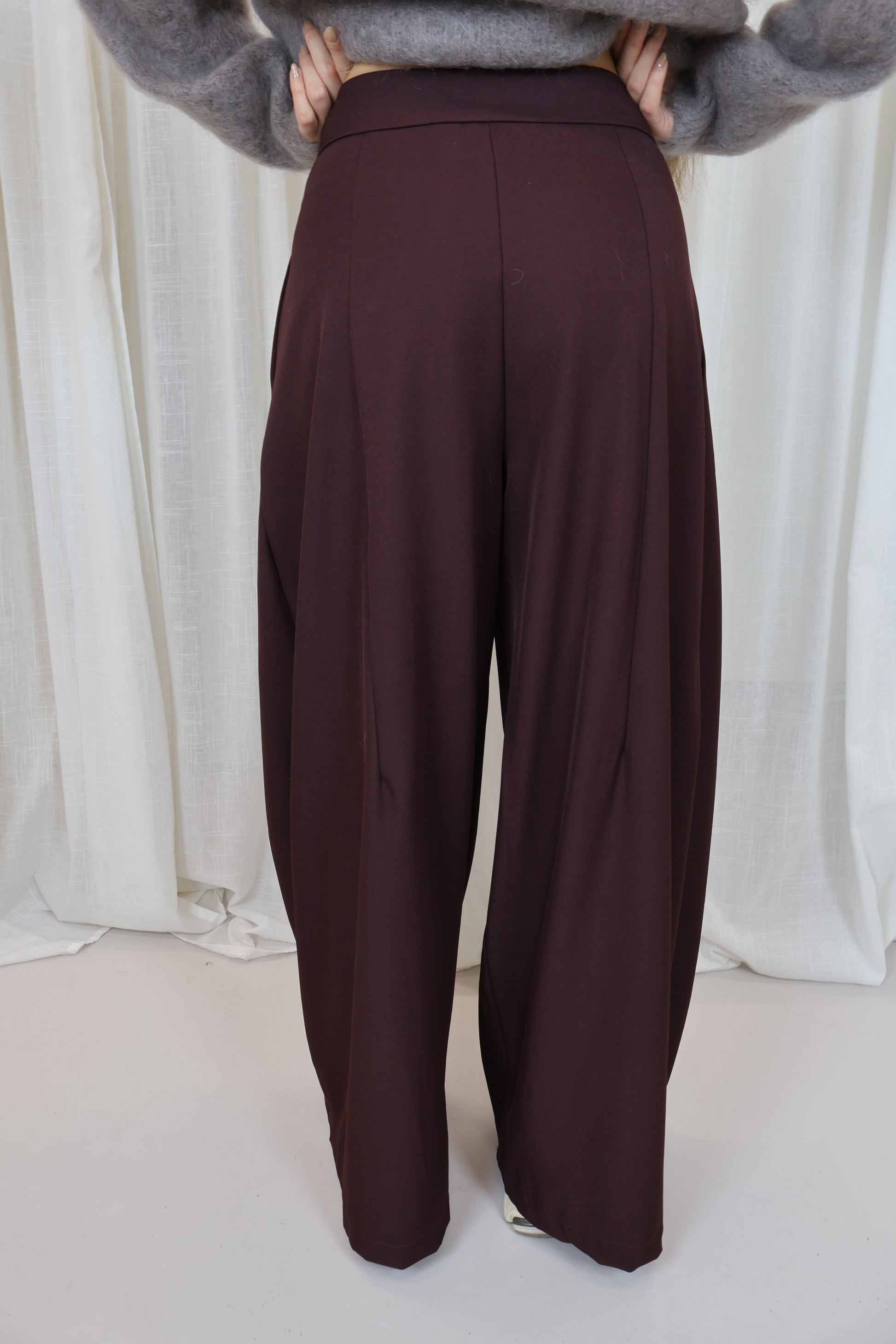 Deze bordeaux plooibroek is een tijdloze essential die in elke garderobe thuishoort. De elegante plooien aan de voorkant geven de broek een verfijnde uitstraling, terwijl de soepele stof zorgt voor een comfortabele pasvorm. Perfect te combineren met een blazer of knit voor een stijlvolle, effortless look — van kantoor tot diner.