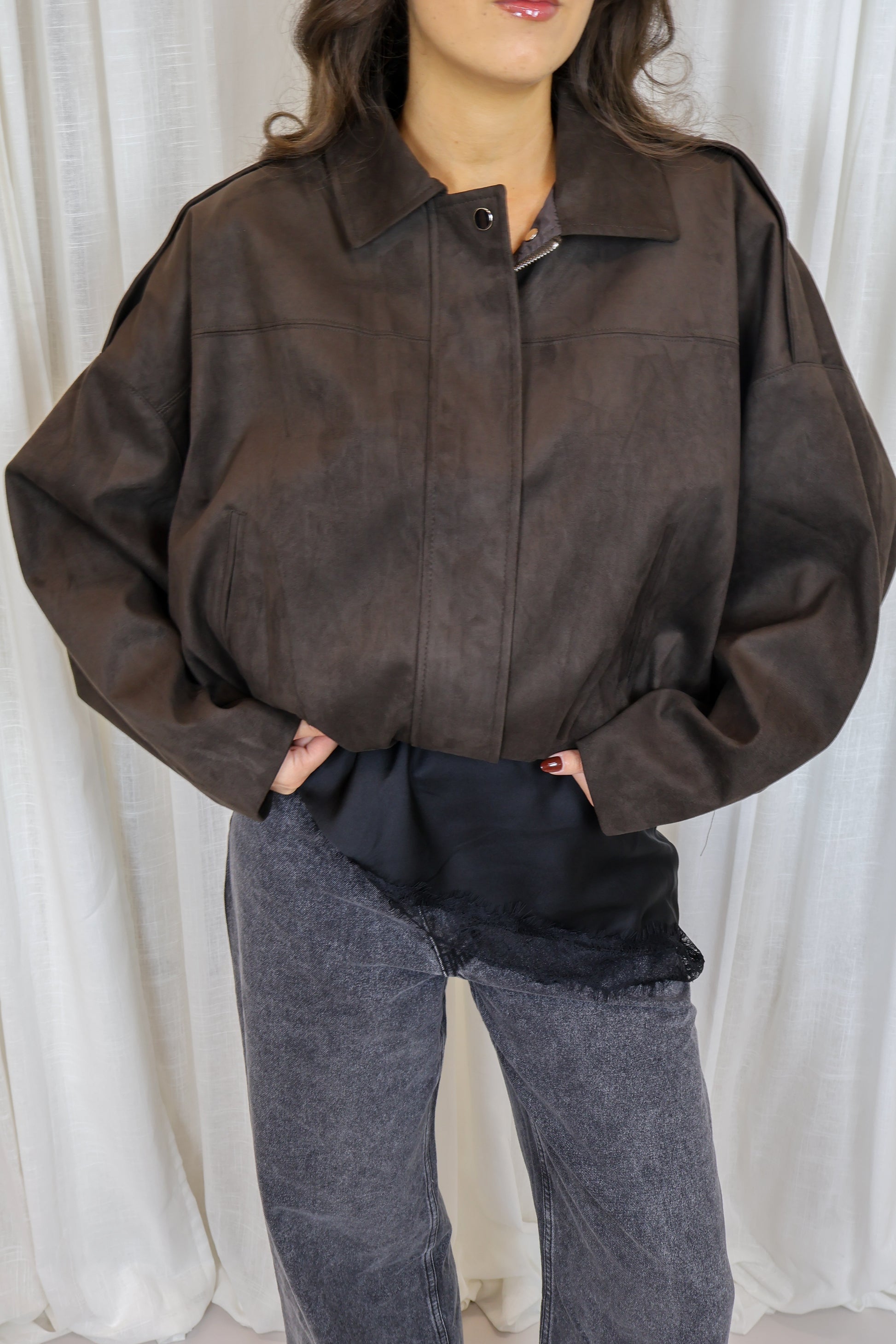 Suède bomber - Donkerbruin